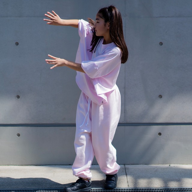 model・・・145㎝ wearing・・・size150 color:baby pink、baby blue color: ベビーブルー、ベビーピンク、黒、白 (写真には全色ありませんが4色展開になります) material: コットン100% 〜HAchiならではのワイドサイズ、ドロップショルダーシルエットに袖口がパフスリーブのデザインです 肩、身幅はワイドサイズですが、丈は後ろ丈が短く少し背中が見えるデザインでダボっと感が軽減されるデザインになります〜