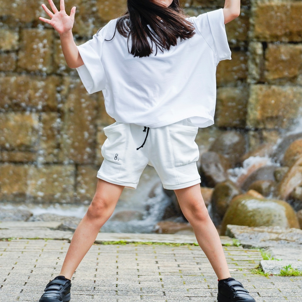 サイドポケットのシルエットがポコっと出るハーフパンツです